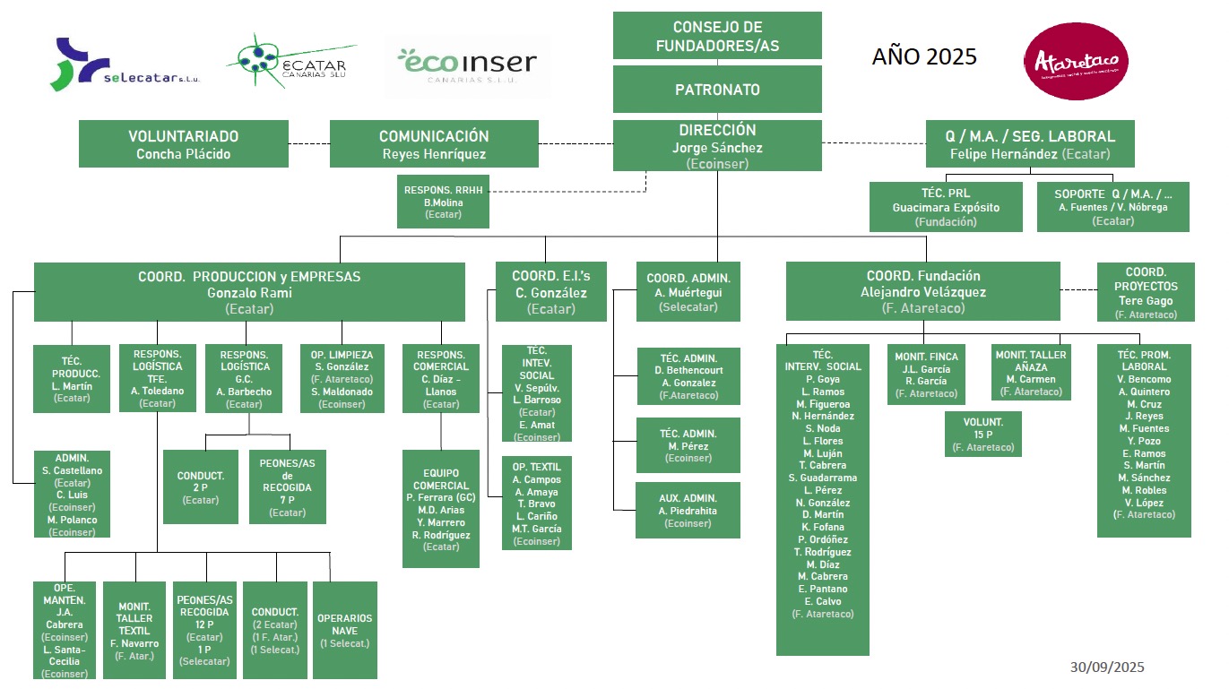 Organigrama: la Empresa de Inserción Ecatar Canarias está integrada en la estructura orgánica de ATARETACO.